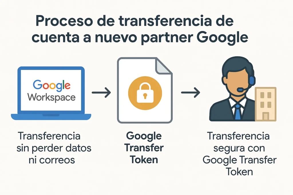 La forma más directa y efectiva de solucionar esta situación es cambiar de partner Google Workspace por un proveedor autorizado en México. Este proceso, llamado Transfer Token, permite migrar tu cuenta a un nuevo distribuidor sin perder correos, usuarios, configuraciones, dominios ni datos de Drive.